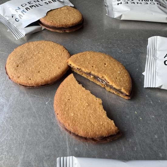 バター香るサクサクのクッキー生地にトロっとしたキャラメルとくちどけよいチョコレートをサンドしました。